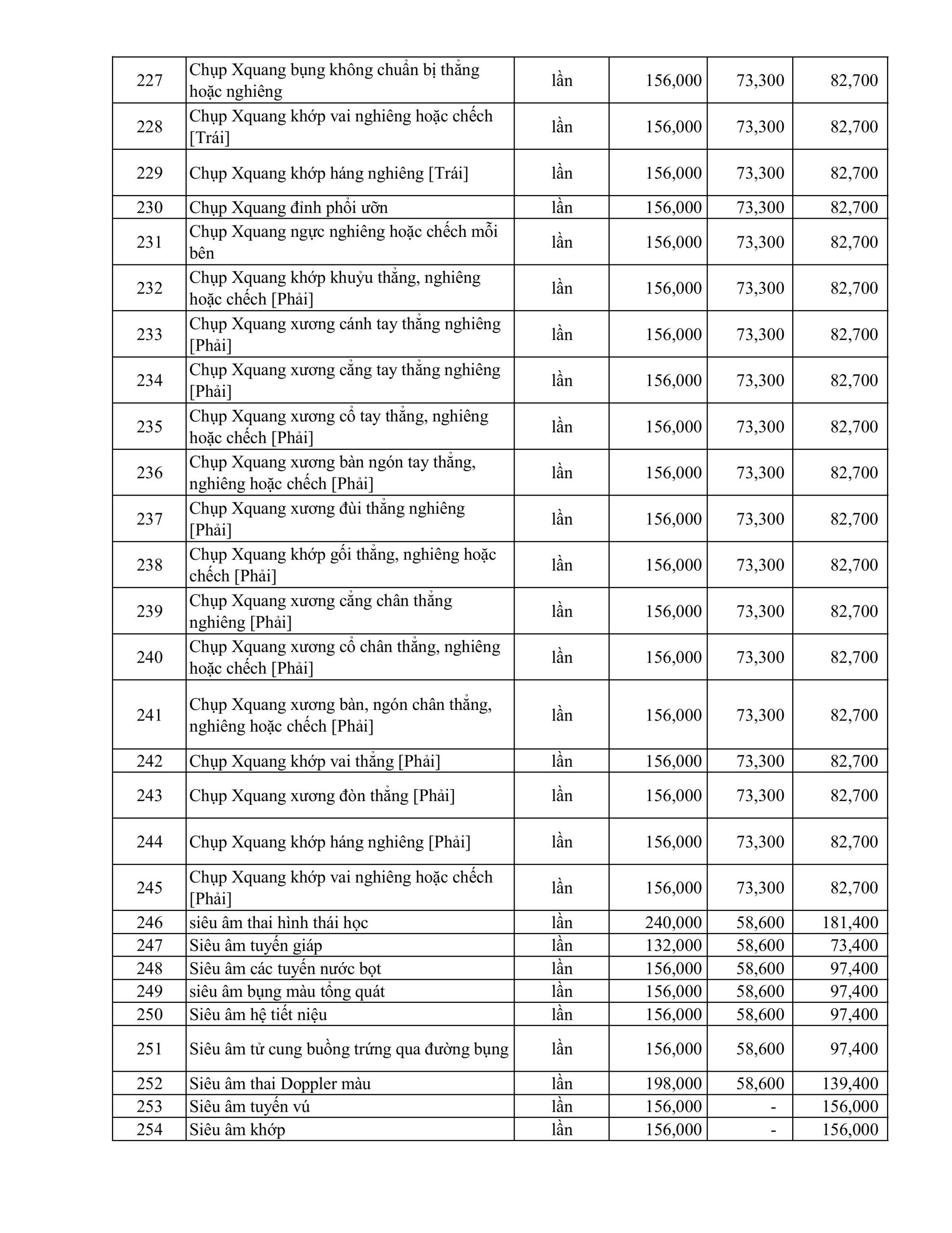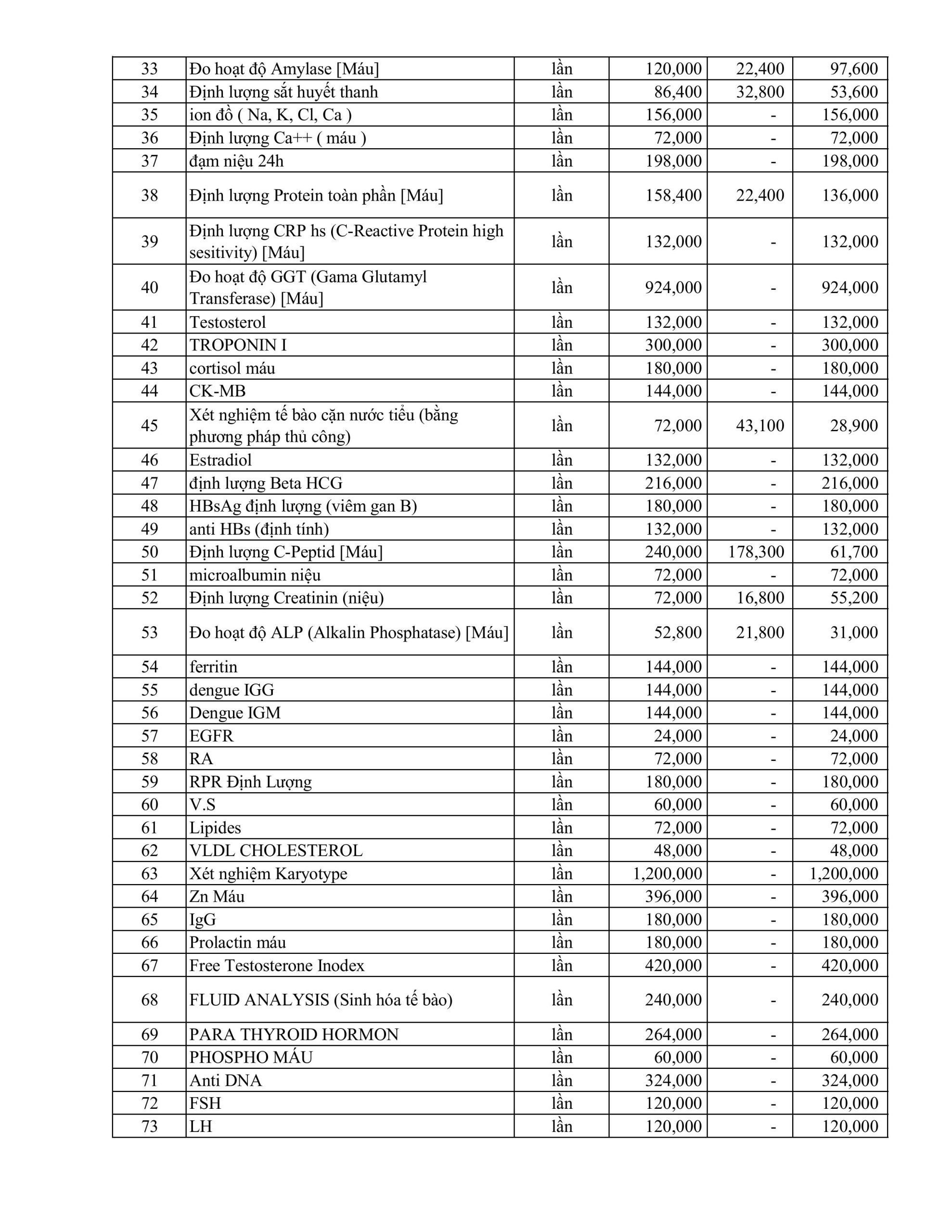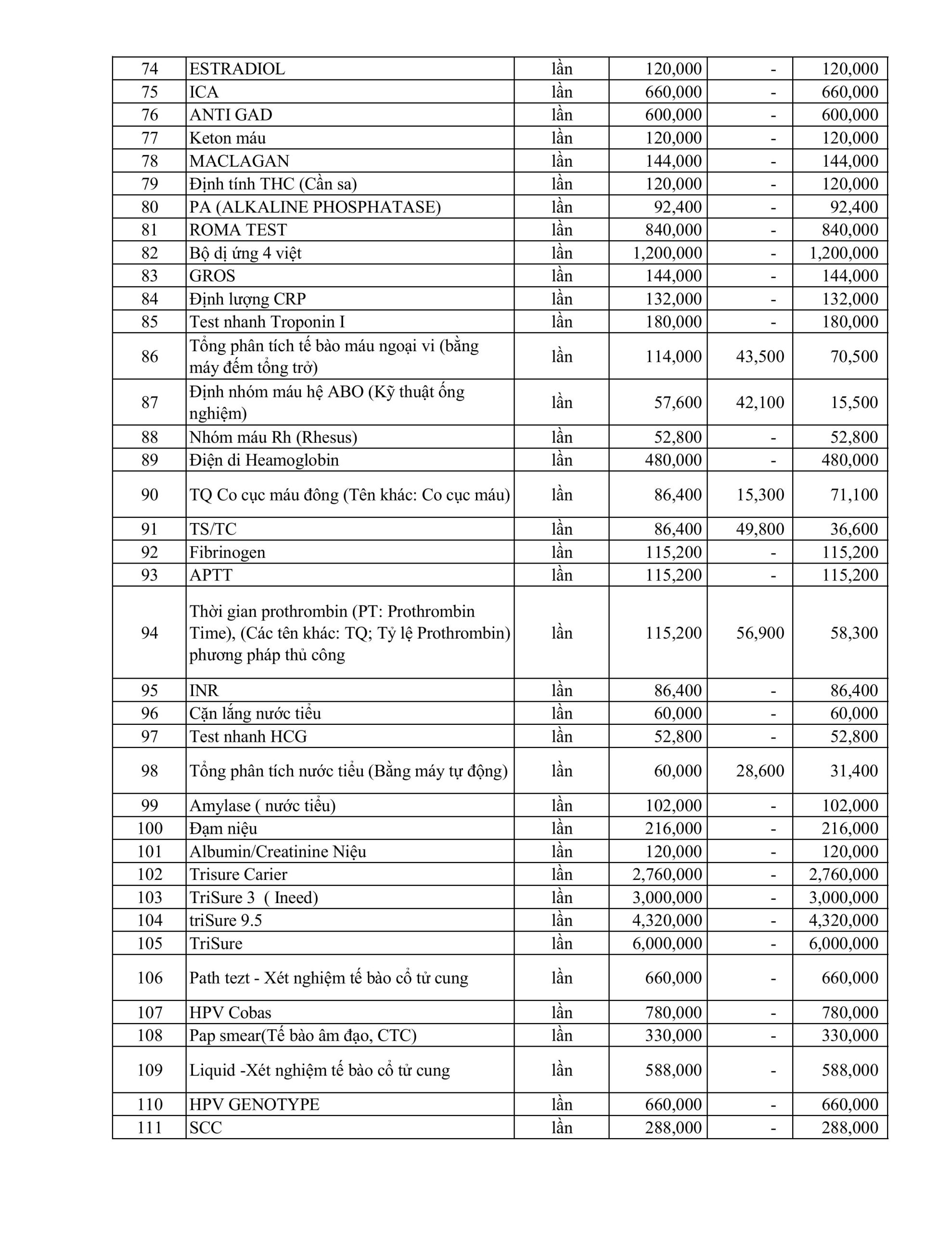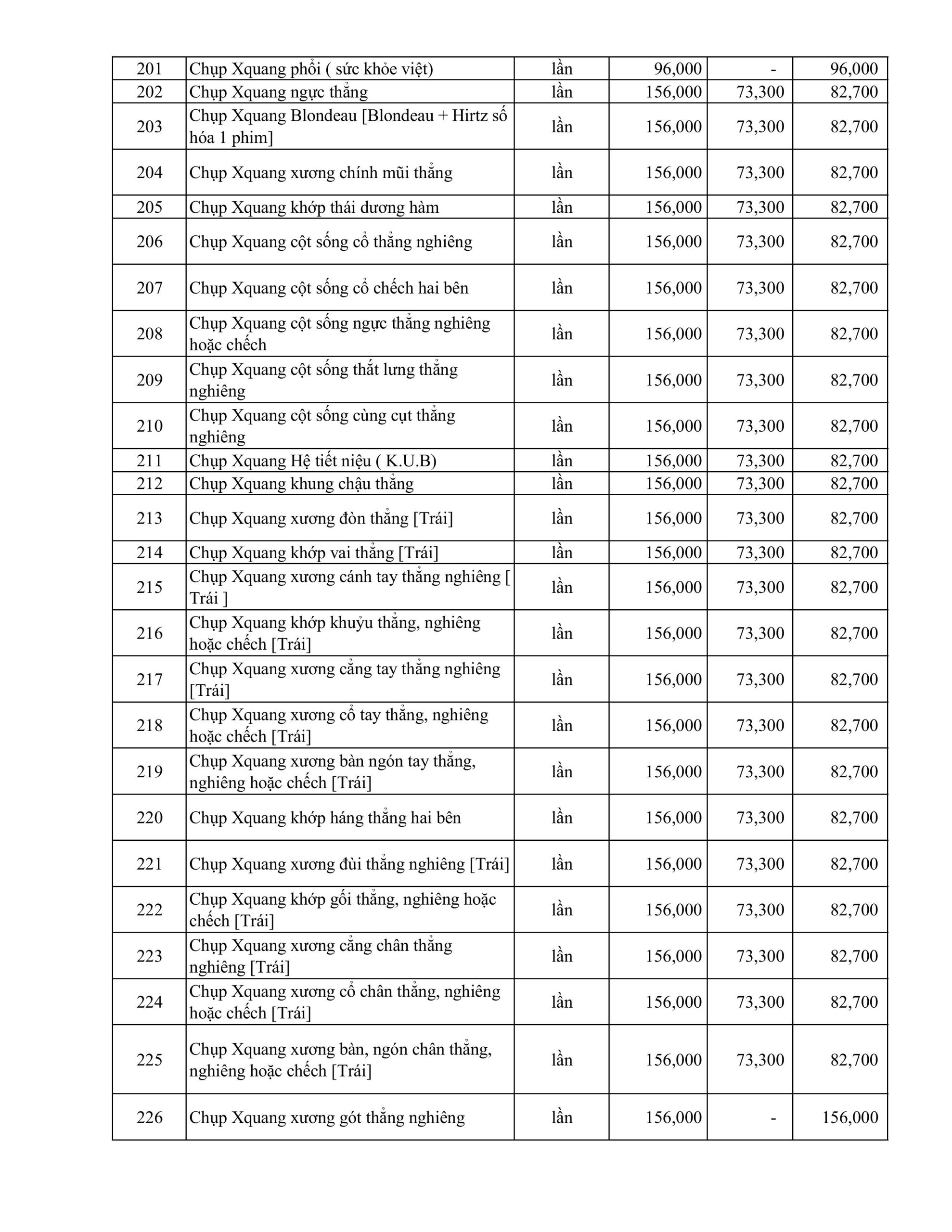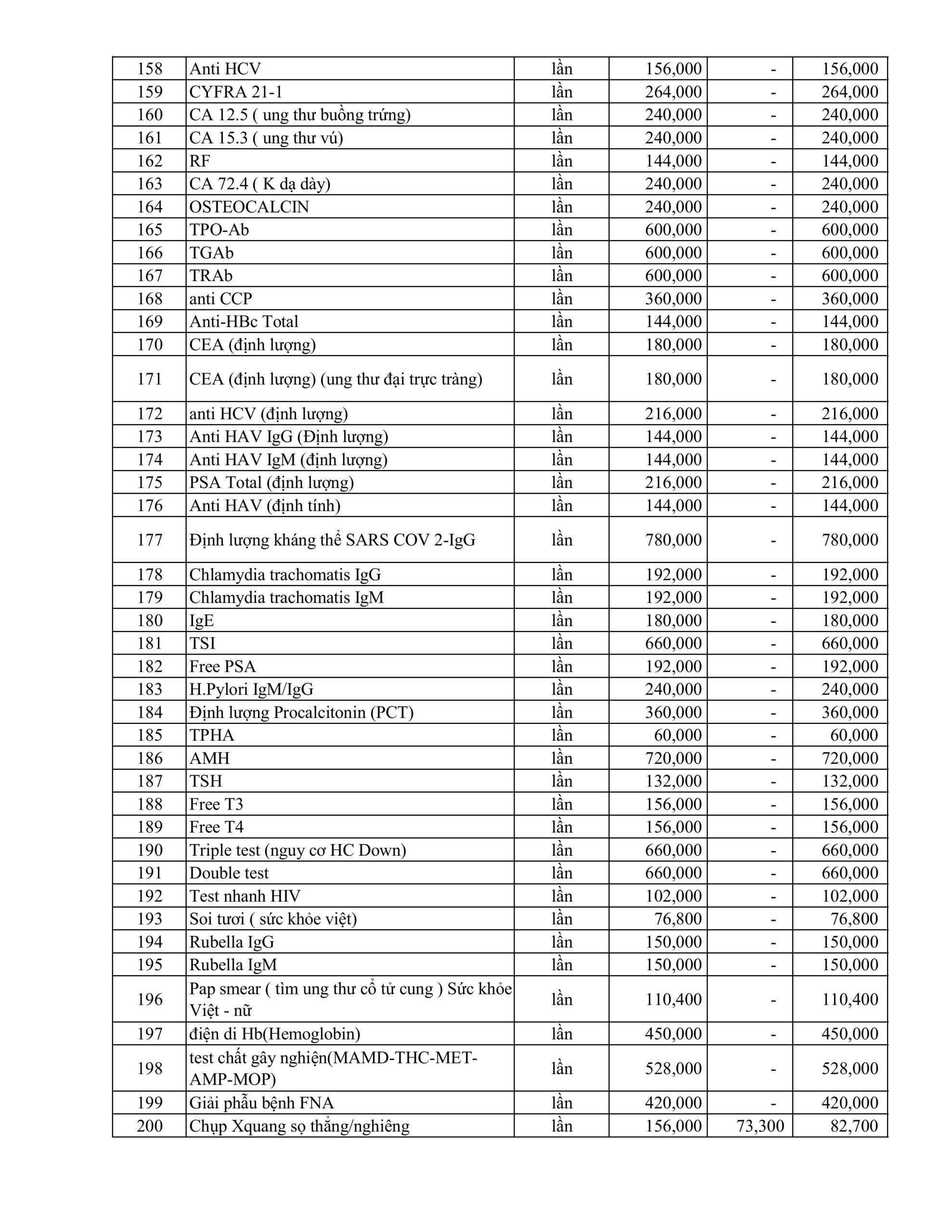 BẢNG GIÁ DỊCH VỤ KỸ THUẬT ÁP DUNG THÁNG 1.2026