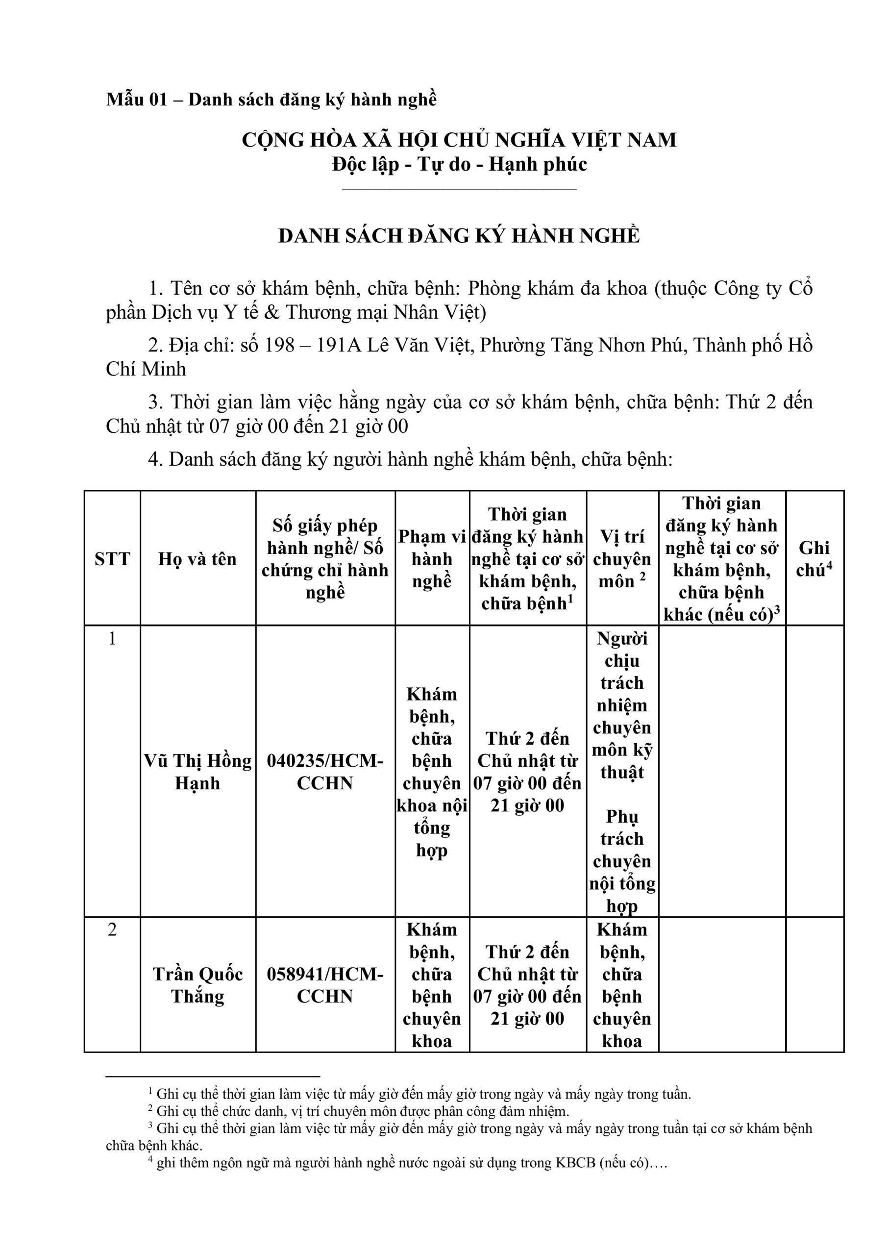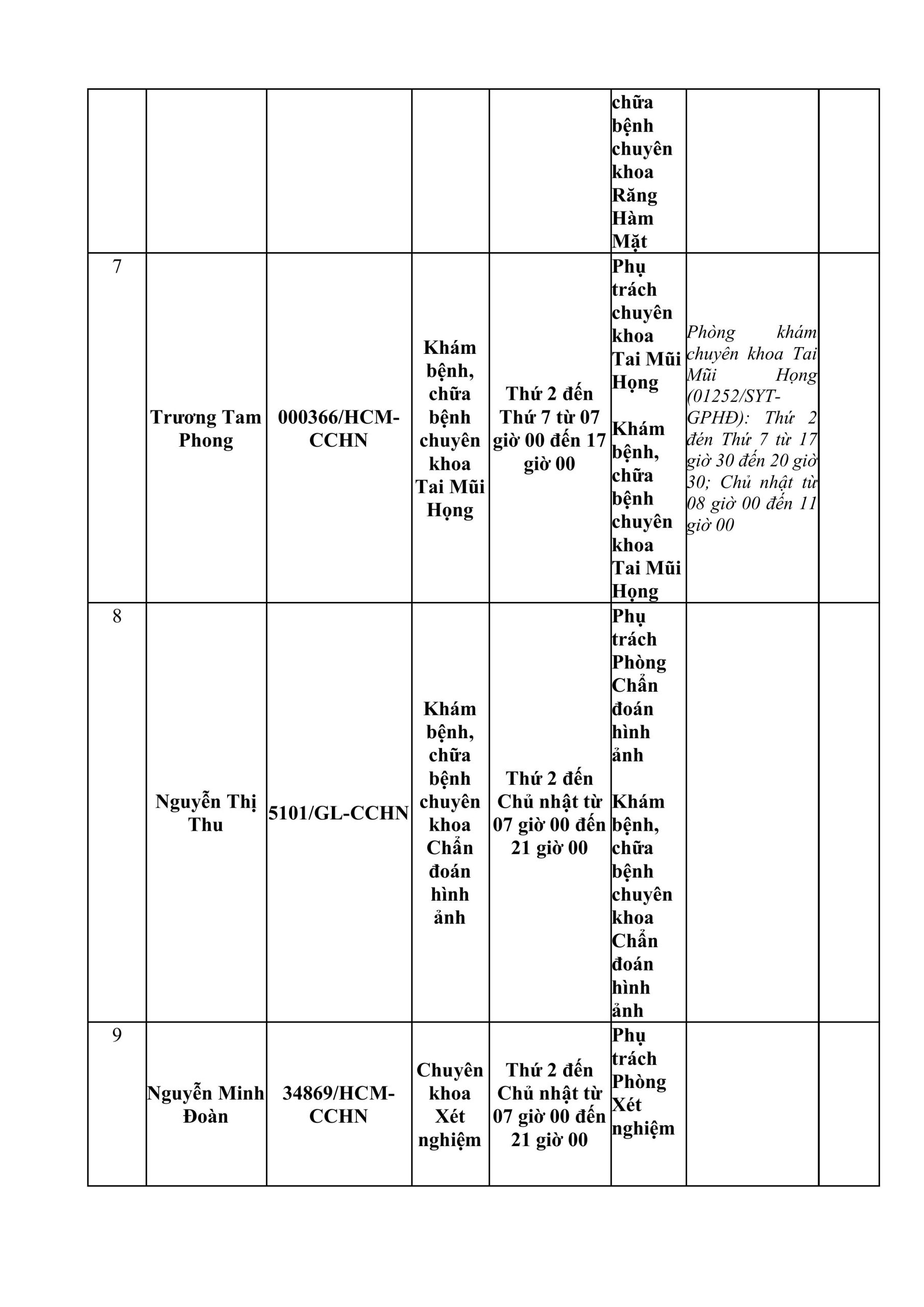 Hồ sơ bác sĩ đang làm việc tại các chuyên khoa